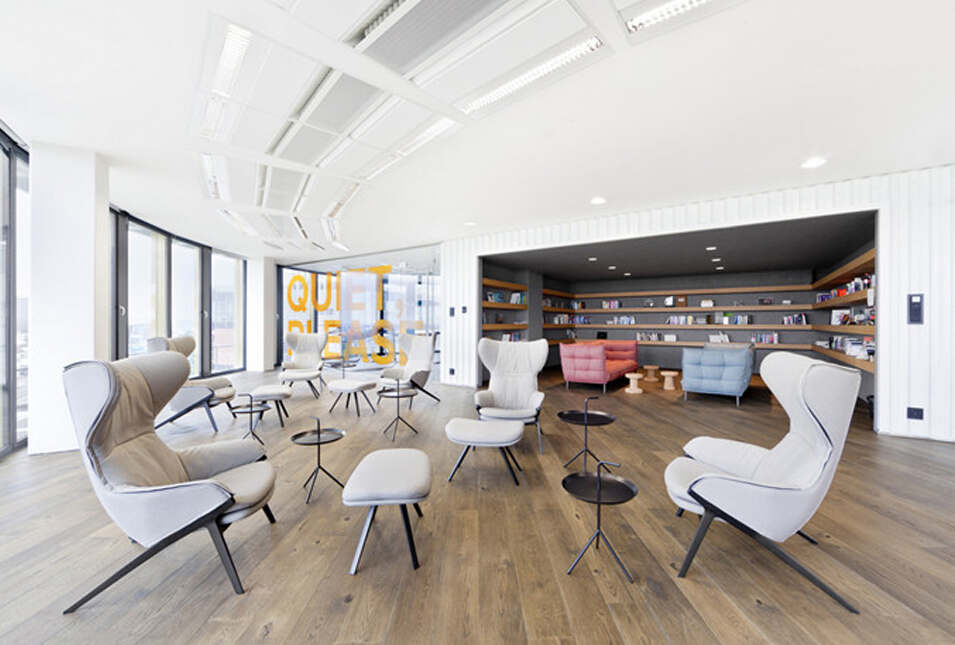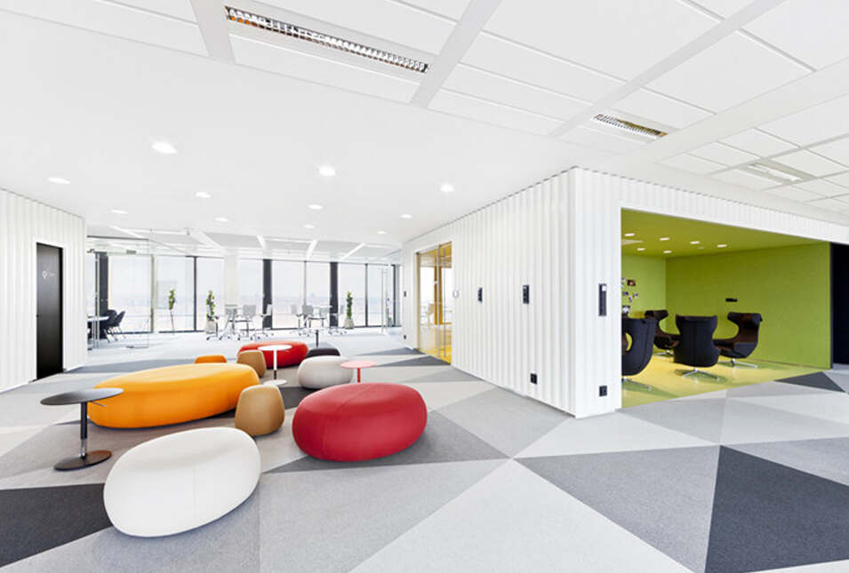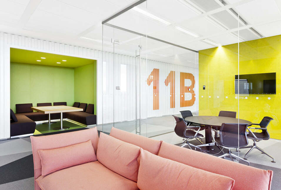 設(shè)計(jì)介紹:好玩的辦公室,體育館、娛樂(lè)室、游戲室、創(chuàng)造放松的空間,石頭型的多彩座椅,更顯趣味性,粉色的沙發(fā)是休息的法寶,并且設(shè)置的有圖書館,供人們休息室查閱,軟裝的座椅舒適,實(shí)用,還有用餐區(qū),木質(zhì)的座椅更加安全,健康,照片墻以綠色為背景顯得清晰明了,人性化,設(shè)計(jì)了體育館,員工們健身娛樂(lè)。