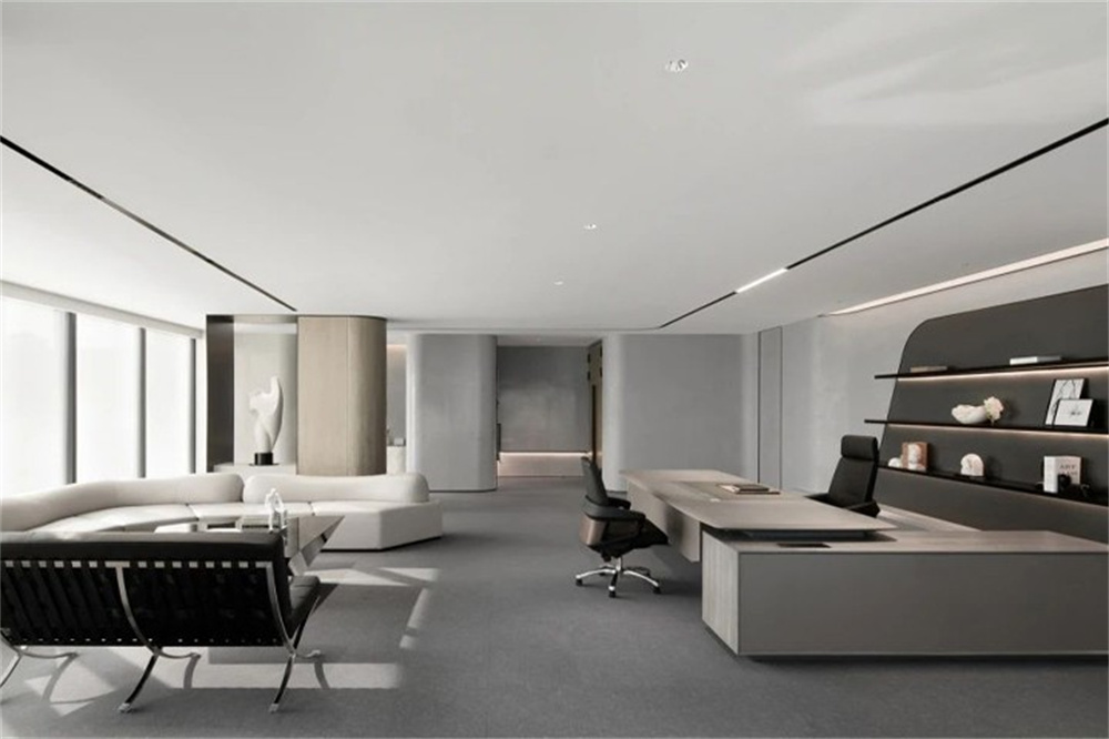 4、商務穩重 一般來說,老牌的大型集團公司的董事長辦公室設計一般采用穩重凝練型辦公室裝修風格,造型上比較保守,方方正正,選擇考究,強調氣質的高貴和尊威。