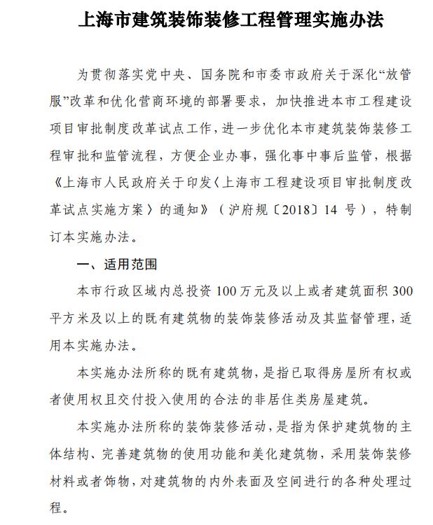 上海市辦公室裝修工程分為一般類裝修工程和特殊類裝修工程兩類。按照分類實(shí)行差別化管理、分類審批。一次申報多個建筑單體或者部位實(shí)施裝飾裝修,凡有一個及以上建筑單體或部位涉及特殊類裝修內(nèi)容,該裝飾裝修工程按照特殊類裝修工程進(jìn)行審批。