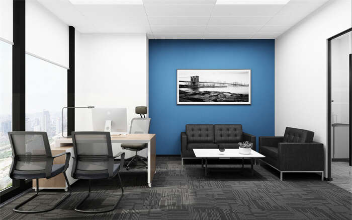 在辦公室設計裝修時,無論是墻面、天花亦或是地面、家具、立面裝飾,這些物體的配色和使用都會使空間產生對比,從而可以提高空間感。那么如何使用墻面、天花、亦或是地面、家具、立面裝飾的配色使空間產生對比呢?那么首先對于墻面、天花及地面,一般來講天花使用灰色系無彩色,也就是淺灰色,墻面使用白色可以極大地提升空間的延伸感。而有一些墻面如會議室或者會議區的電視背景墻則可以使用有彩色或灰色與周邊白色墻面形成對比,一方面點綴了空間不讓其那么單調,另一方面使用顏色對比空間使空間感覺更加寬敞。而對于地面、家具和墻面裝飾,首先家具要盡量使用同等規格的工位有序且承區域排放使空間看起來更加整齊。因為雜亂的空間不僅使人心煩意亂,而且會使空間看上去無序且擁擠。而整齊的空間使人賞心悅目,心胸開闊且工作效率提升。地面要和家具色彩相反若使用深色地面,則宜采用淺色家具,若使用淺色底面則使用深色家具起到穩定重心的作用,使得空間不至于輕浮或者過重。至于墻面裝飾則可以使用烤漆寫字板,一方面增加功能性形成一片功能區域,另一方面寫字板烤漆反光也可以作為空間的折射延伸。