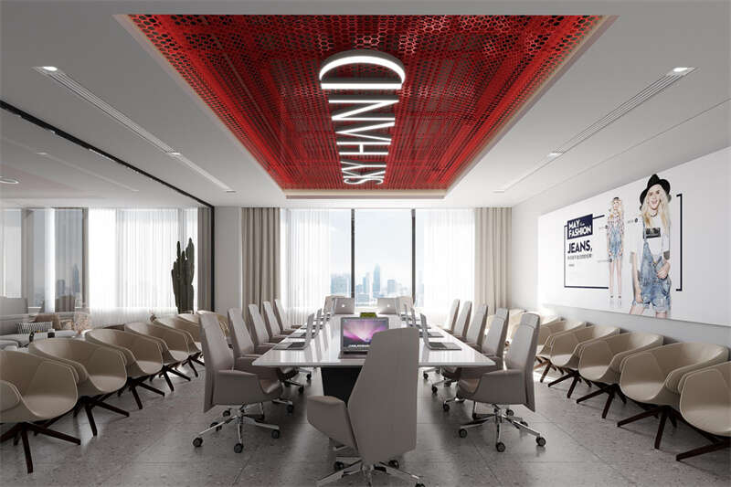 例如常用的暖色調為代表的紅色、黃色和橙色;紅色代表熱情、活潑、健康、希望等,但對人來說大面積使用紅色卻會使人敏感易怒,因此在設計和裝修過程中適合使用紅色給辦公室進行一些點綴,例如在柱子或者茶水區的墻面上做一些與地面或天花相呼應的造型;