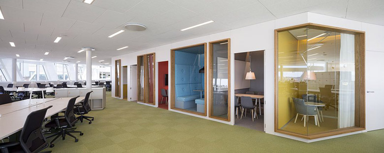 主題法是指在辦公空間的建模中,有規律地重復一個主要的隊形,形成一個完整的形式系統。這種方法常用于傳統設計和各種現代風格的辦公樓設計中。就像音樂中的主旋律,雖然經歷了各種變奏,但它的音調是不變的,始終如一的。首先,成功地保持了空間的和諧與完整。